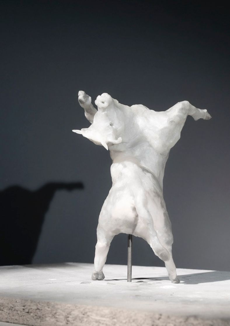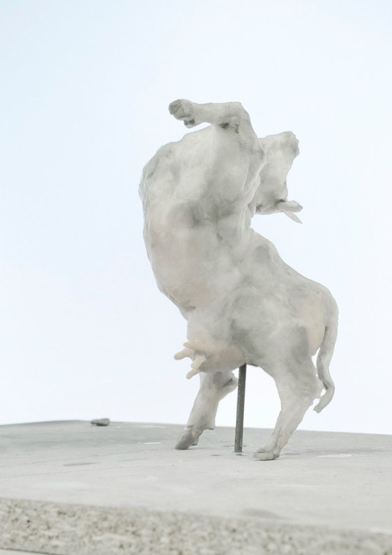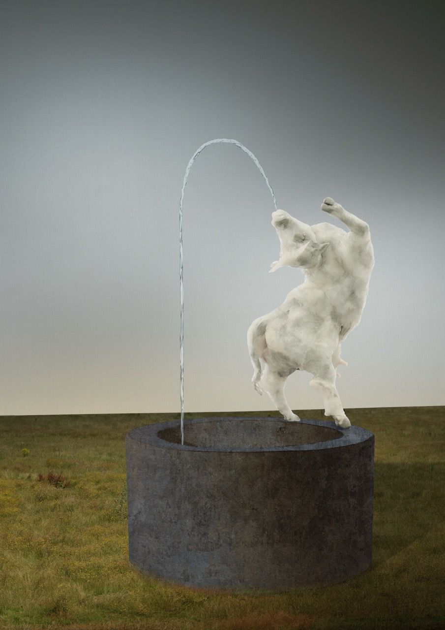 Der Brunnen markiert das Zentrum des Platzes - kein Dorfplatz ohne Brunnen. Am Rand des Beckens steht eine verzückt tanzende Kuh. Sie empfindet Freude an sich selbst und verweist auf die Möglichkeit bedingungslosen Glücklichseins.