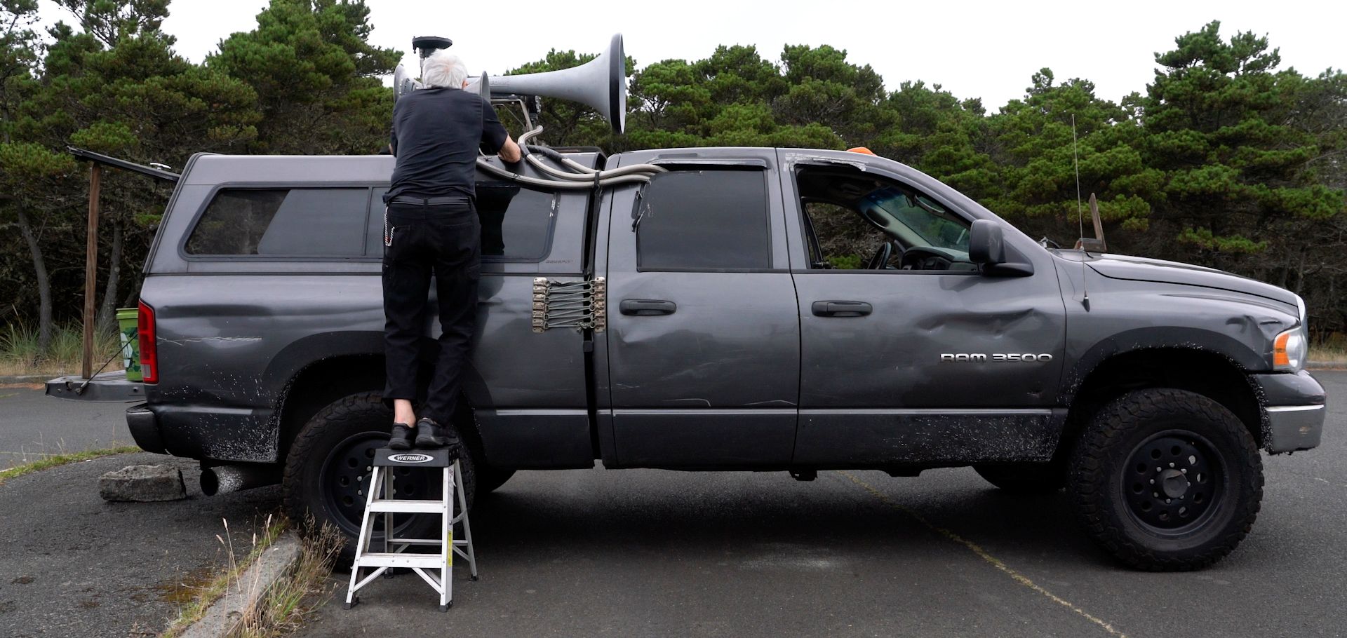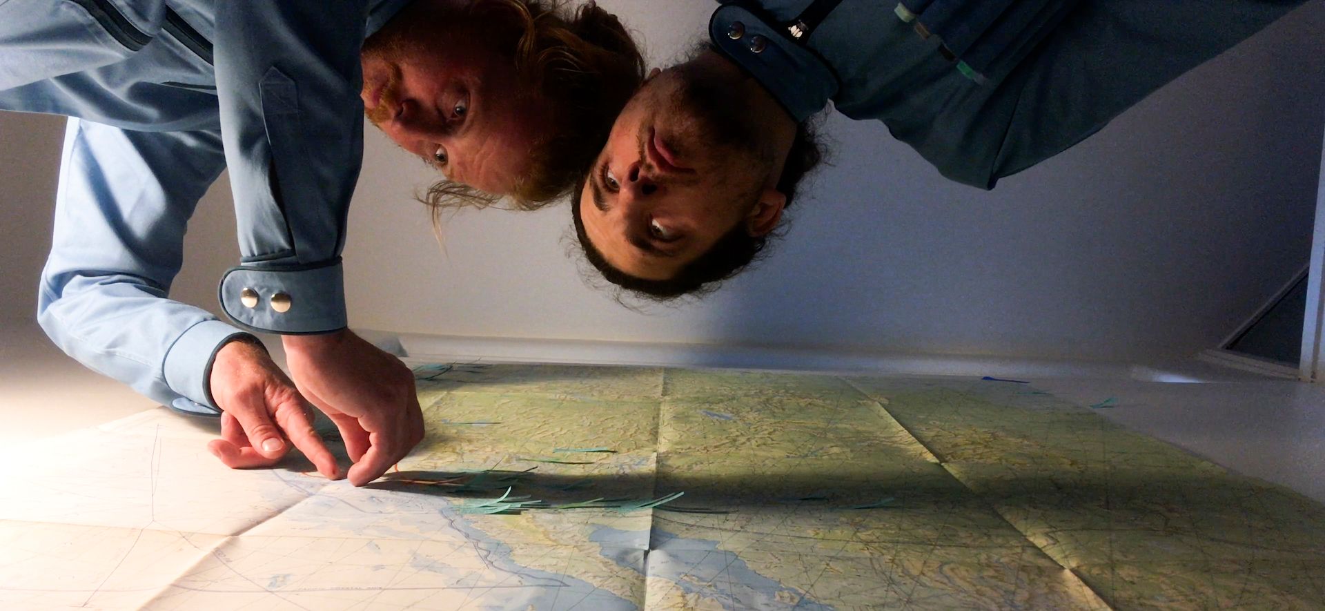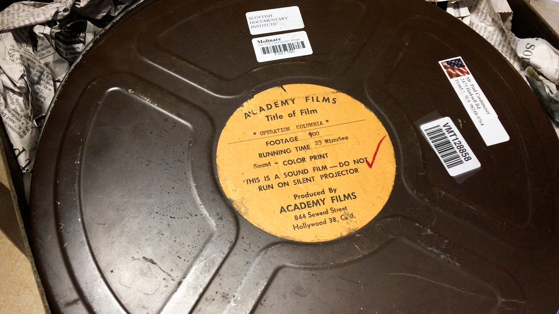 Guided by an artificial search dog,we follow the route of Operation Columbia,a ten mile motorcade of grey vehicles, moving from Los Angeles to Vancouver in 1947, promoting the ideas of Technocracy Inc.